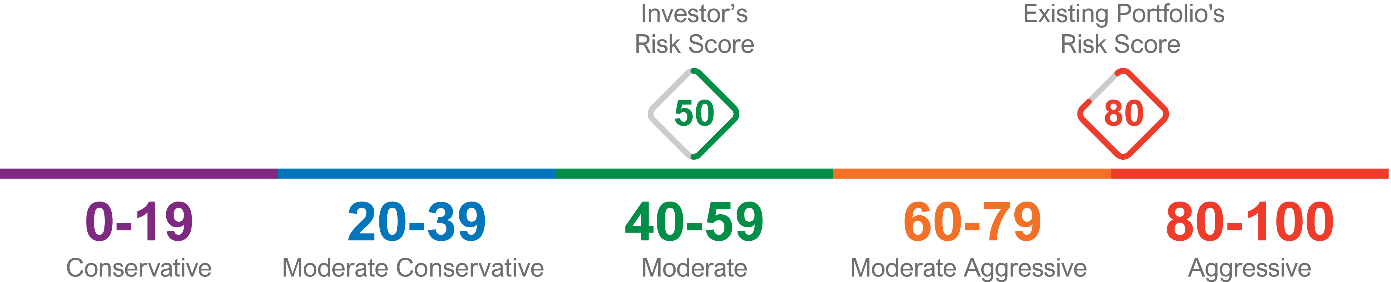 To help investors understand their risk threshold we deploy a proprietary algorithm rooted in the well-known Value at Risk (VaR) measurement that helps us quantify their sentiment toward financial uncertainty, specifically their emotional tolerance with respect to the magnitude and speed of potential investment loss. This Analysis provides them with a VaR Score that can help determine if their existing portfolio aligns with their risk tolerance.