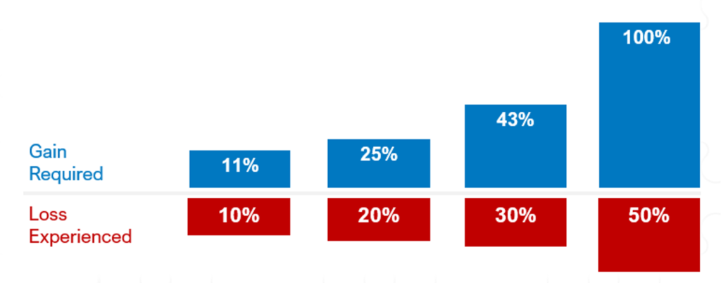 As investment loss increases, the gain required to restore the loss increases at an escalating rate.